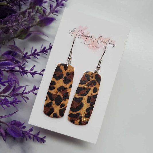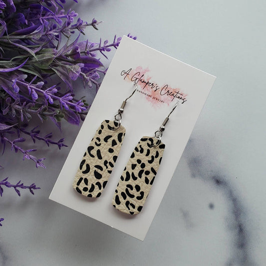 Light Tan & Black Leopard Mini Bar Leather Earrings