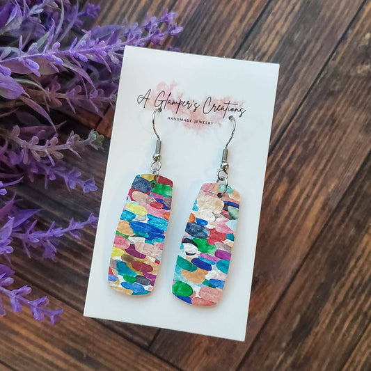 Multi Color Painted Dots Mini Bar Leather Earrings