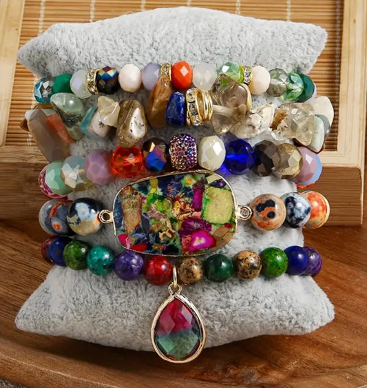 Natural Stone Glass Beaded Stack Bracelet