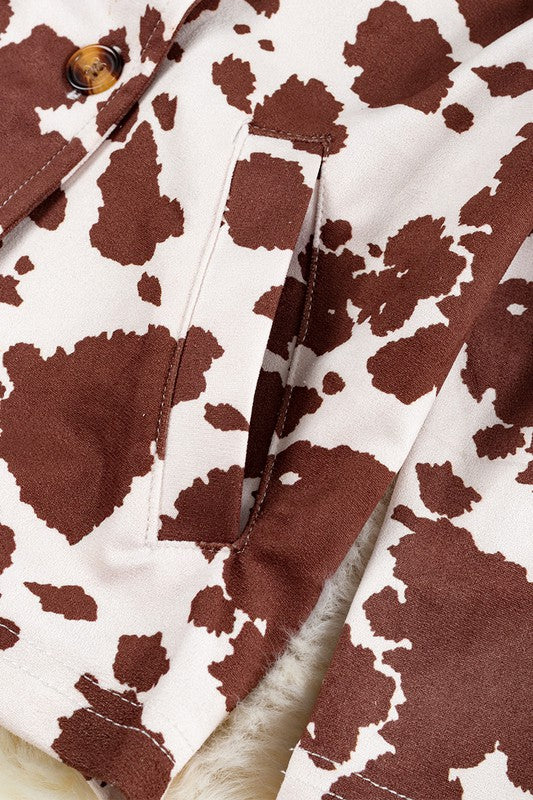 Girls Cow Print Blazer w/ Pockets