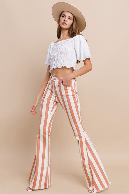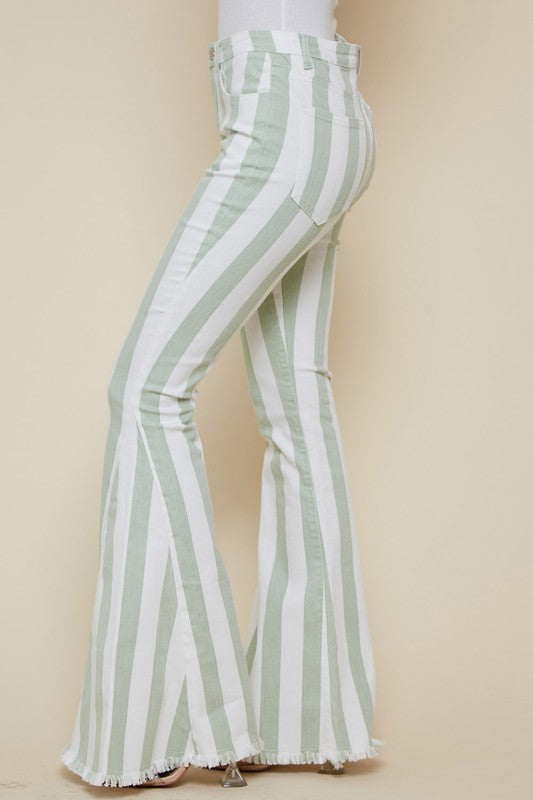 Striped Distressed Hem Bellbottom Jeans