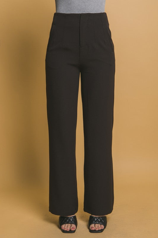 Stretch High Rise Pin Tuck Wide Leg