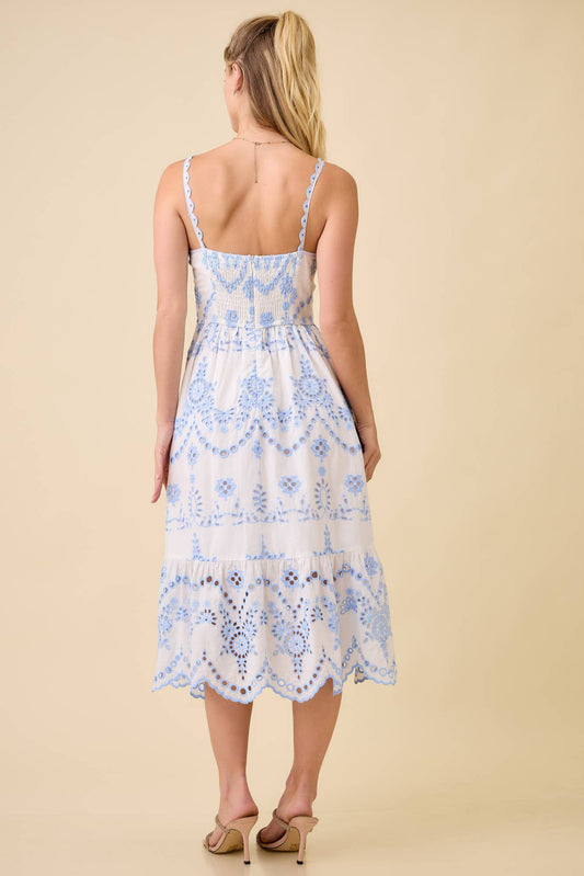 Midi Dress with Eyelet Fabric Detail and Scallop Hem