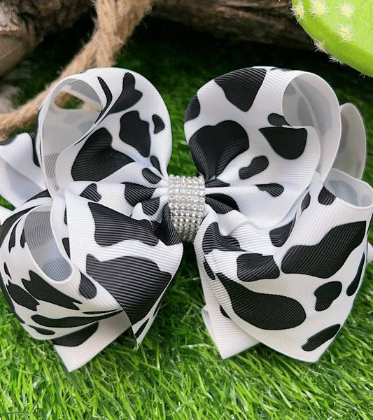 Cow Rhinestone Hair Bow