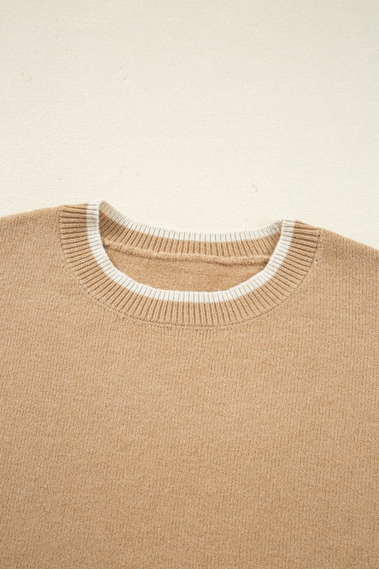 Leopard Bow Decor Split Cuffs Trim Sweater